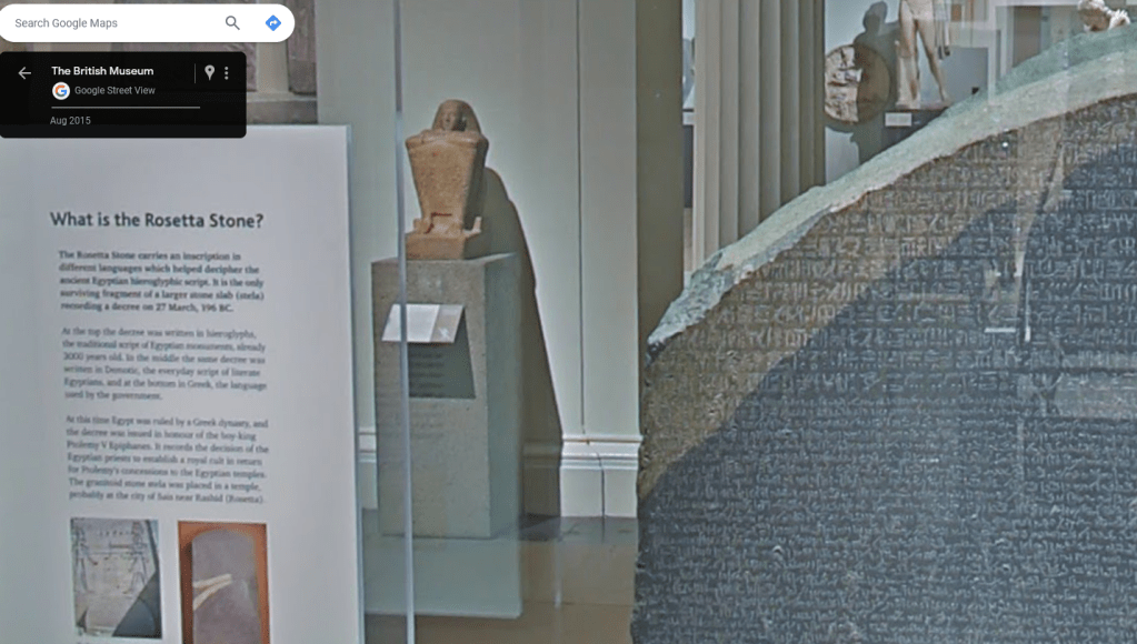 The Rosetta Stone, Google Street View. You can almost count the pixels on that text block